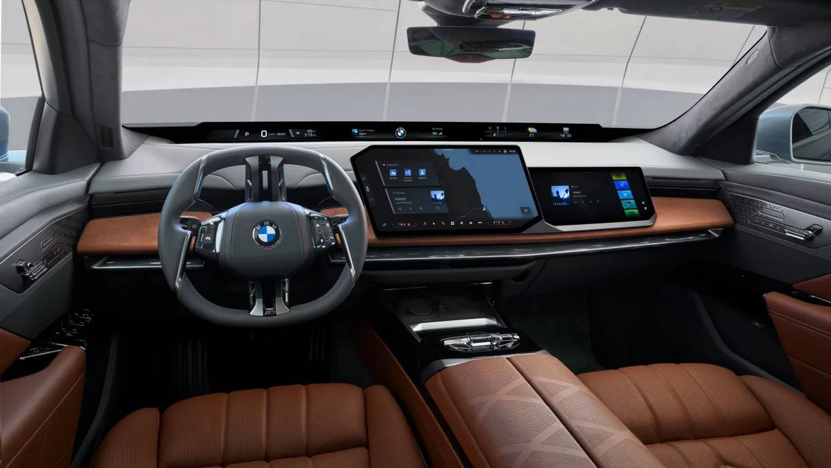 Interiorul este locul unde schimbările devin cu adevărat radicale. BMW introduce noul concept Panoramic iDrive, care mută informațiile esențiale într-un display proiectat pe toată lățimea parbrizului, eliminând practic instrumentarul de bord clasic. Consola centrală este dominată de un ecran mare de aproximativ 17,9 inch, completat de un display dedicat pasagerului din dreapta. În același timp, comenzile fizice sunt reduse drastic, iar celebrul controller iDrive dispare, semn clar că BMW merge spre o experiență complet digitală.