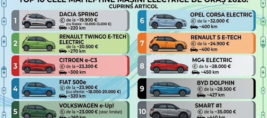 Top 10 Cele mai ieftine Mașini Electrice de Oraș 2026